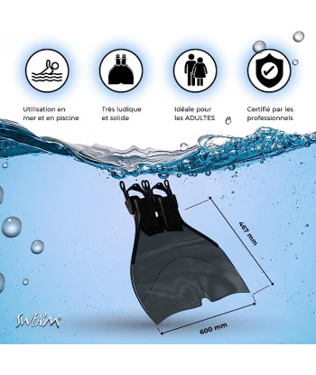 Chausson élastomère souple avec prolongement de la voilure sous le pied.