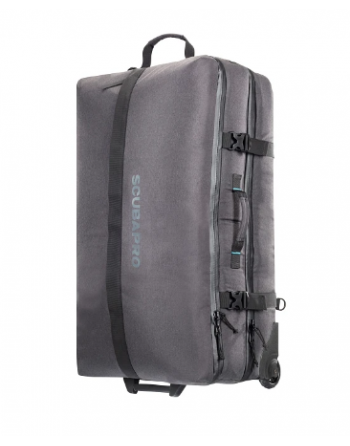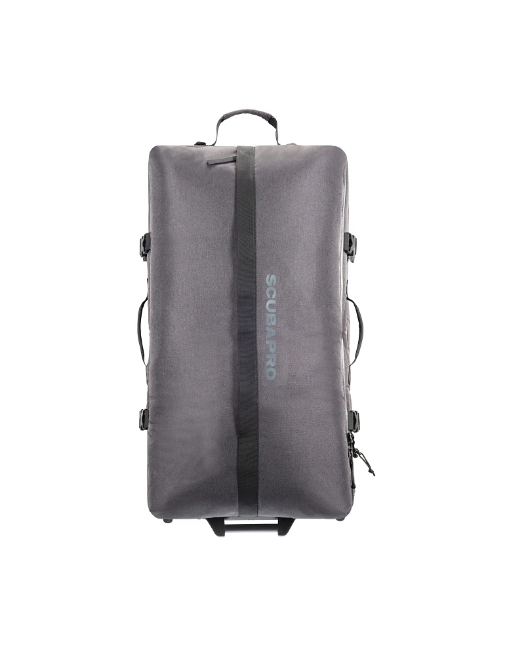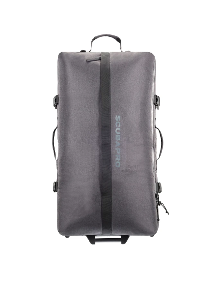 Sac à roulettes haut de gamme à double compartiment pour les grands voyageurs. Fabriqué avec un nouveau tissu recyclé gris chiné avec doublure intérieure noire estampillée du logo SCUBAPRO. Conception résistante avec barrettes de renforts cousues bleues. Fermeture éclair YKK principale en U, résistante à l’eau, à double curseur, avec des cordons de tirage noirs et une boucle de verrouillage pour plus de sécurité