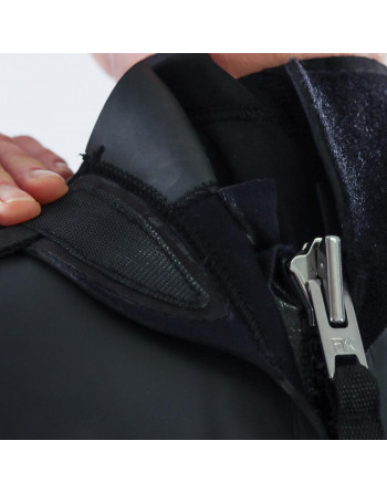 Combiné avec le gilet RF pour améliorer la protection thermique. Cela crée 6 mm sur la zone critique du torse et une protection de 3 mm pour la tête, gardant la combinaison affleurante au minimum sans ajouter de volume restrictif.