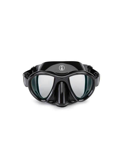 Jupe en silicone souple. Sangle de masque en silicone moulée. Lentille en verre trempé.