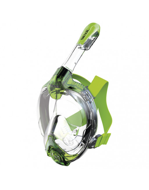 Le système respiratoire breveté SEAC dirige l'air inspiré et expiré dans deux canaux complètement différents. Cela permet une respiration naturelle sans aucun effort, comme hors de l'eau, et évite la buée du verre due à l'échange d'air. Le tuba du masque intégral Seac Libera est équipé d'un système de dessus sec qui empêche l'eau d'entrer par le haut en cas d'immersion accidentelle du tube et a des couleurs vives pour être clairement visible à la surface de l'eau.