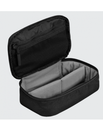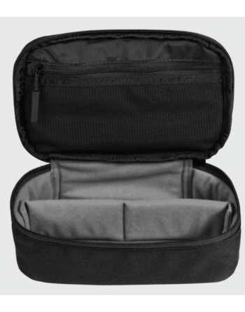 Poche à fermeture éclair et cloison velcro repositionnable. Poignée de transport souple.