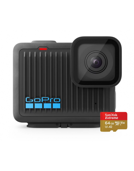 Le pack comprend 1 caméra Hero, 1 carte SD 64GB, 1 poignée flottante, 1 fixation de bouche et des fixations adhésives plates et incurvées, 1 batterie, 1 cordon USB.