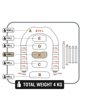 Les segments arrière sont fixés grâce à un système sécurisé, permettant d’atteindre un poids total de 5 kg tout en maintenant une taille compacte et un confort optimal.