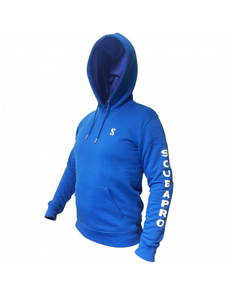 Sweat à capuche bleu de la plus haute qualité, 85 % de coton biologique et 15 % de polyester 300 g recyclé.